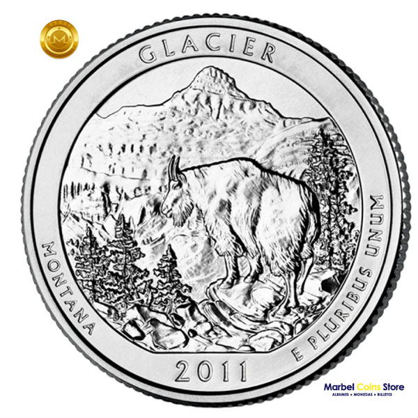 El cuarto de dólar del Parque Nacional Glaciar 2011-P & D  representa al estado de Montana y fue acuñado en la Casa de la Moneda de Filadelfia y Denver