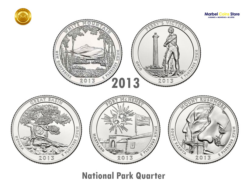 El Cuarto de Dólar del Parque Nacional Perry’s Victory 2013-P y D representa al estado de Ohio y fue acuñado en la Casa de la Moneda de Filadelfia y Denver.