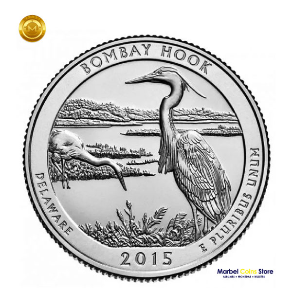 Home » Tienda » Monedas » Monedas USA » 25 Ctvs. » Parques N. 2010-2021 » 2015 P, D. Bombay Hook Parque Nacional 25ctvs