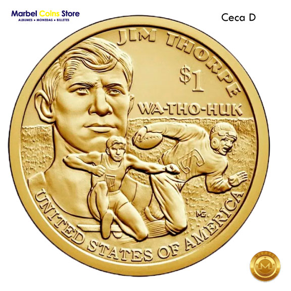 | Inscripciones | UNITED STATES OF AMERICA, $1, y «JIM THORPE.» | Reconocimiento a uno de los atletas más grandes de la historia de EE. UU. |
