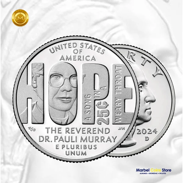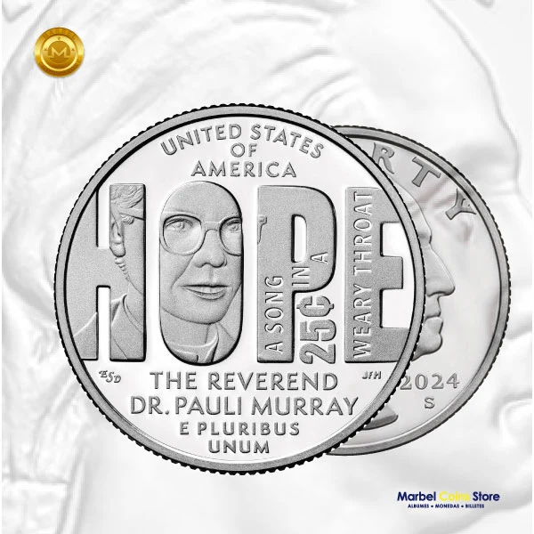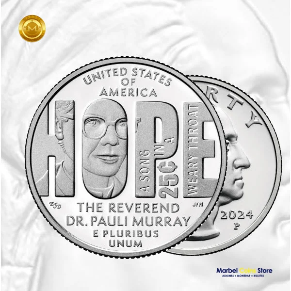 Celebra el legado perdurable de la Reverenda Dra. Pauli Murray con la moneda de 25 centavos de 2024 de la Casa de la Moneda de Denver. Esta pieza conmemorativa rinde homenaje a sus logros pioneros y a su papel fundamental en la lucha por los derechos civiles y la igualdad de género en Estados Unidos.