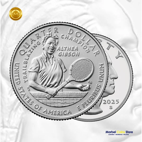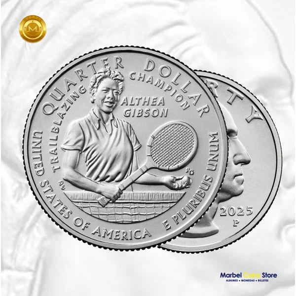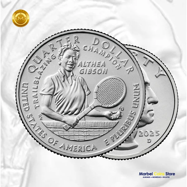 Añade un pedazo de la historia del deporte a tu colección con la moneda de 25 centavos de Althea Gibson de 2025, acuñada en Filadelfia. Esta moneda conmemora la extraordinaria trayectoria de Gibson, una figura pionera que transformó el tenis y abrió puertas a futuras generaciones.