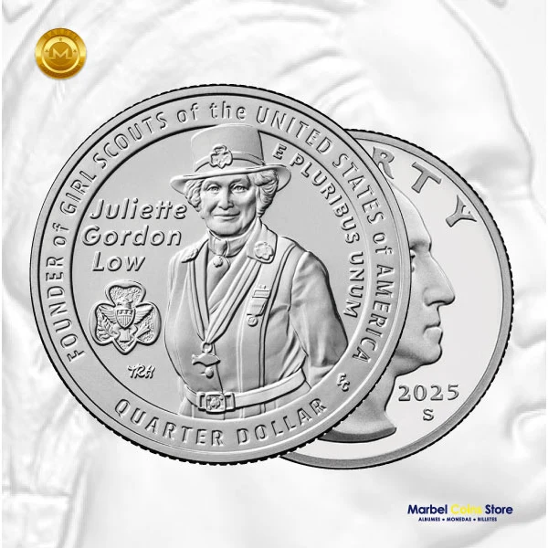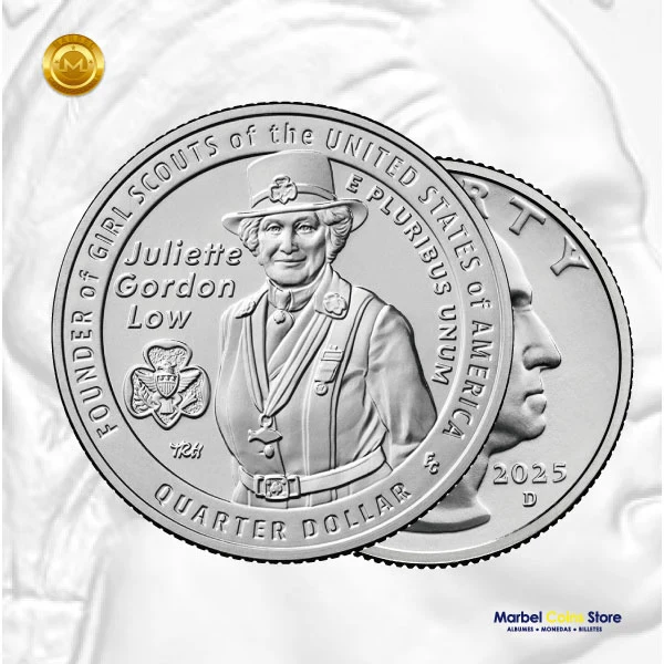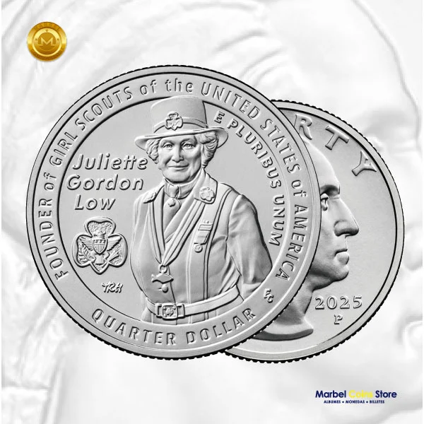 El cuarto de dólar Juliette Gordon Low de 2025, acuñado por la Casa de la Moneda de Denver, es el segundo lanzamiento del programa American Women Quarters de este año. Esta moneda conmemorativa rinde homenaje a la fundadora de las Girl Scouts of the USA.