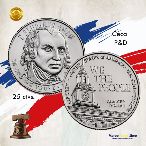 En conmemoración al Semiquincentenario (250 años) de los Estados Unidos de América, se presentan estas cinco nuevas monedas de 25 centavos. Por única vez en la historia, estas piezas presentan diseños especiales que celebran la Libertad Americana, reflejando los principios fundacionales y honrando los hitos que dieron forma a la nación.