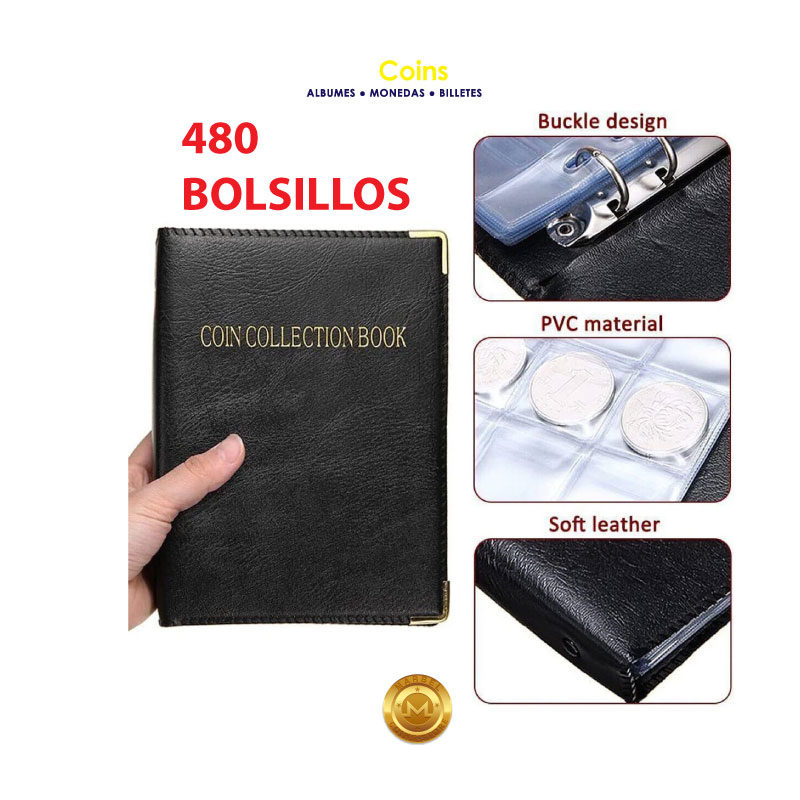 • Capacidad Masiva: Equipado con 20 páginas de alta resistencia, permite almacenar un total de 480 piezas (monedas, centavos, quarters, medallas o insignias).