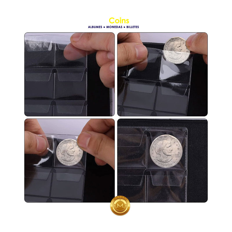 • Seguridad Garantizada: Cada bolsillo individual cuenta con una solapa superior (flap) de protección, diseñada para evitar que las monedas se deslicen o se caigan al pasar las páginas.