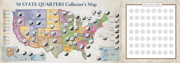 Mapa Coleccionador de los Cuartos de los 50 Estados (Incluye Cecas P & D)
