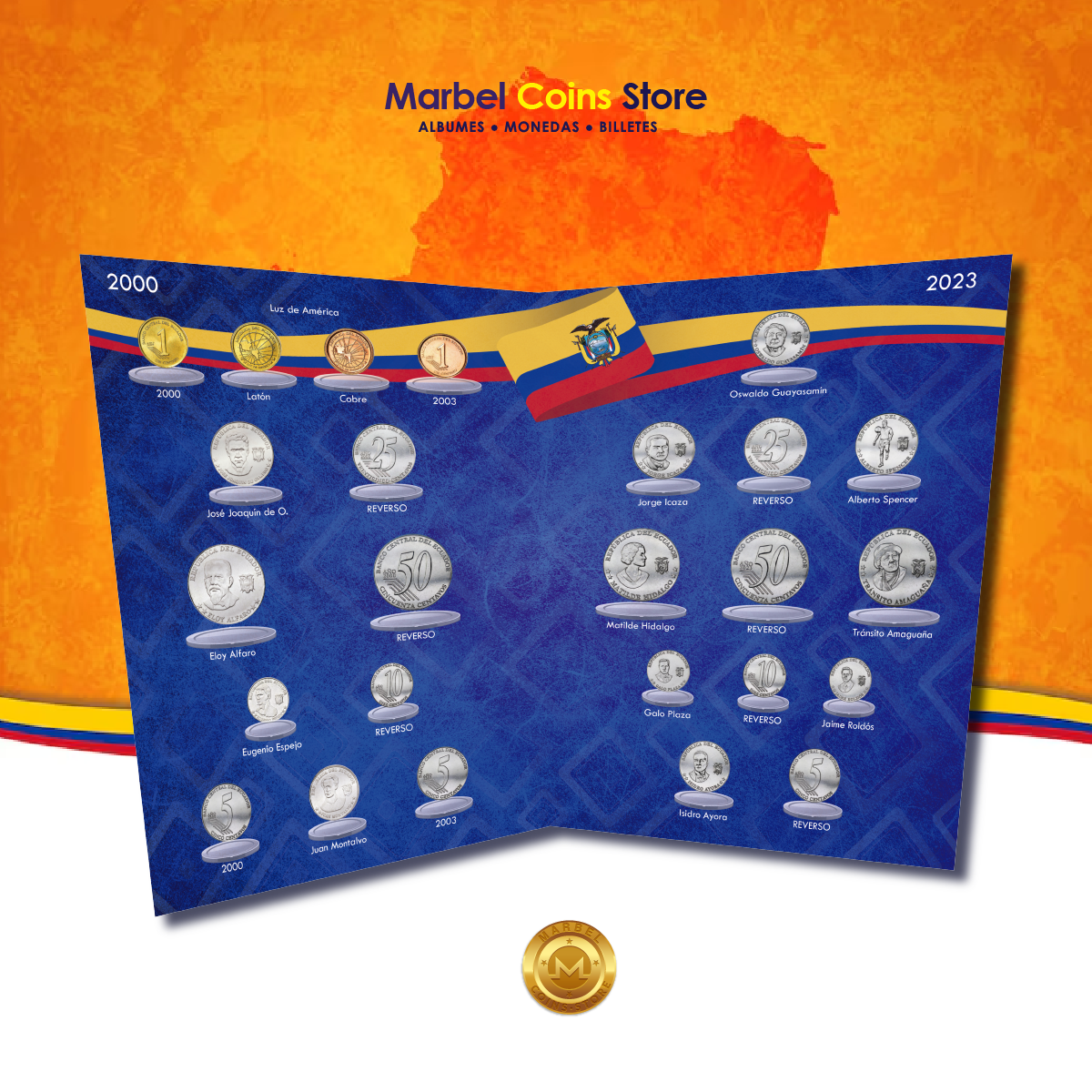 Álbum Coleccionador MarbelCoinsStore para Monedas de Ecuador (2000-2023)