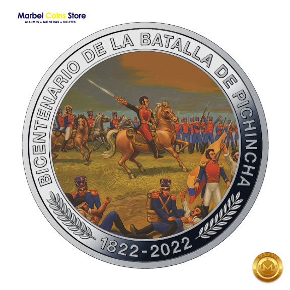 | Leyendas del Anverso | Se incluye la inscripción «Bicentenario De La Batalla De Pichincha» junto con las fechas «1822-2022». | |