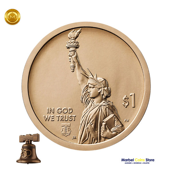 DETALLE EXCLUSIVO 2026: Estas son las únicas monedas de UN dólar en la historia que llevan grabada la marca de la campana y el número 250, conmemorando el Semiquincentenario de los Estados Unidos.